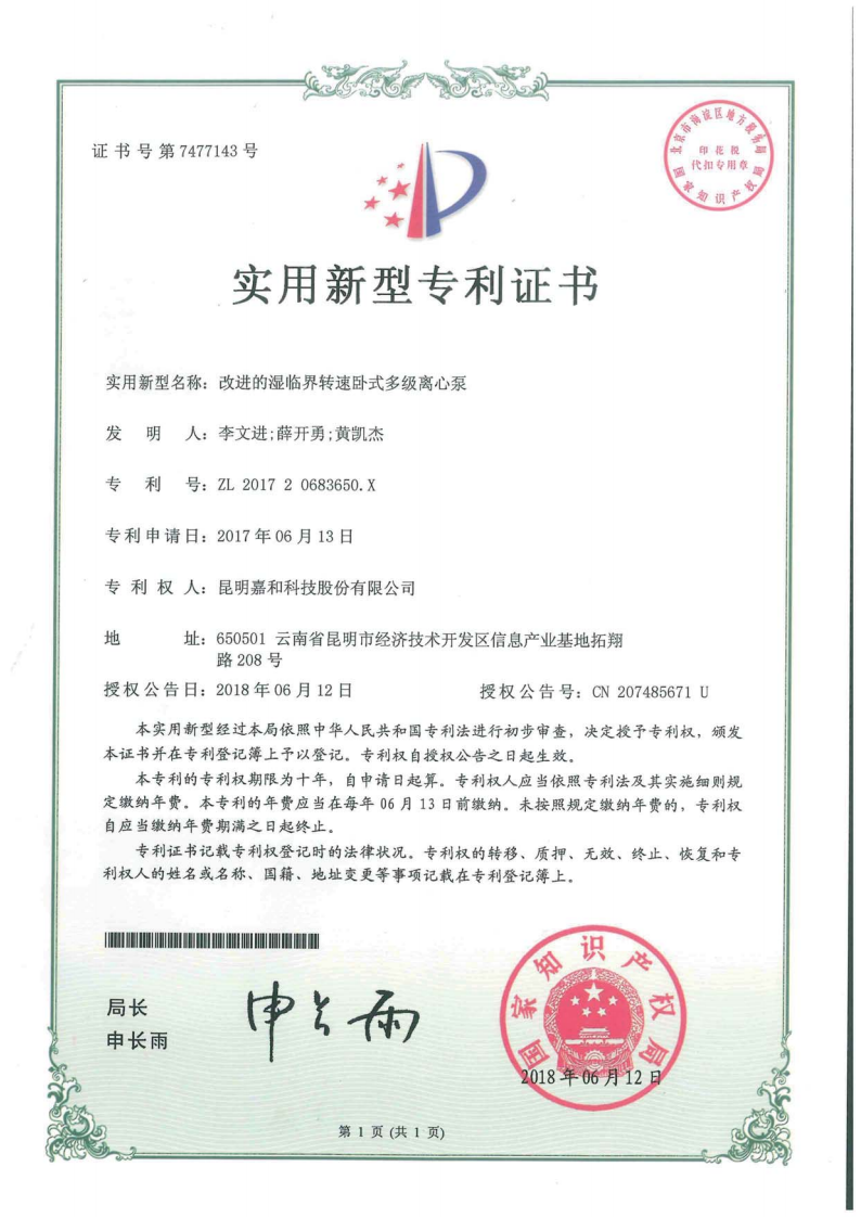改進(jìn)的濕臨界轉(zhuǎn)速臥式多級(jí)離心泵