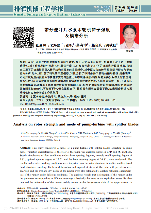 帶分流葉片水泵水輪機轉子強度及模態分析