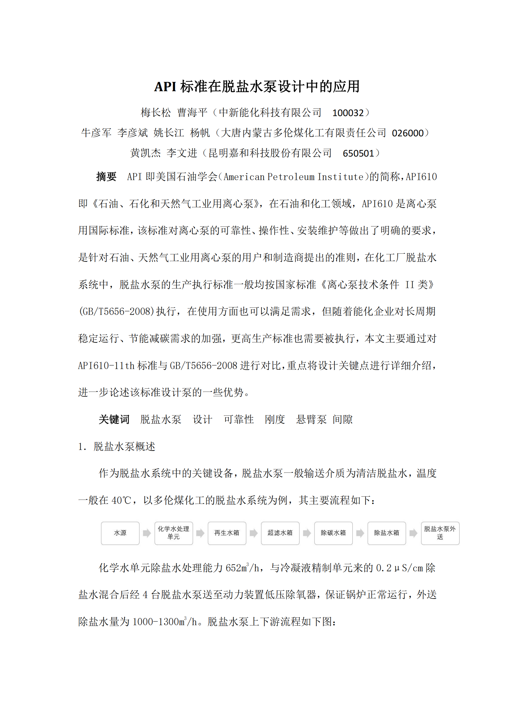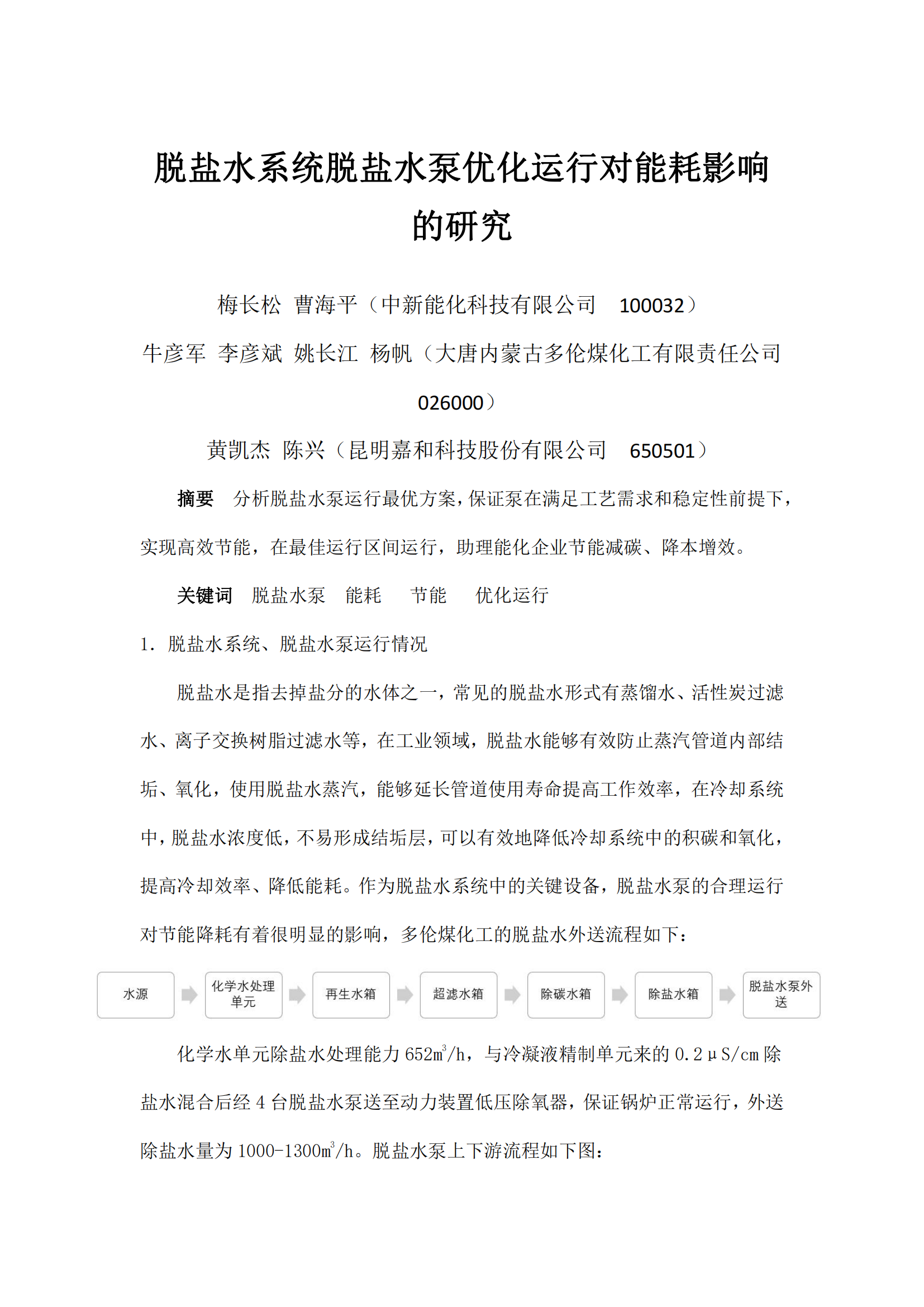 脫鹽水系統脫鹽水泵優化運行對能耗影響的研究