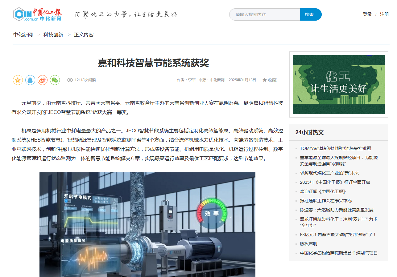 近日,2024全國民營企業科技創新系列榜單在黑龍江哈爾濱揭曉,昆明嘉和科技股份有限公司(以下簡稱嘉和科技)開發的“JECO智慧節能系統及應用”案例,入選“全國民...